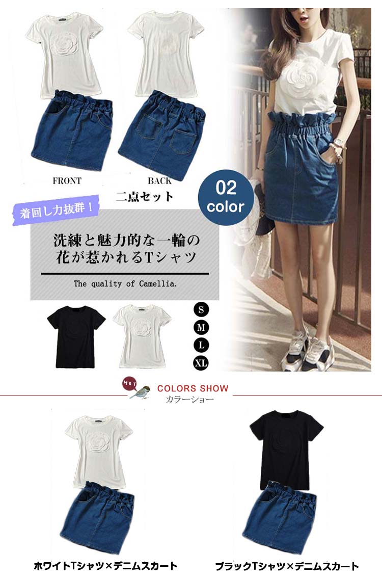 | 色 | ホワイトTシャツ×デニムスカート ブラックTシャツ×デニムスカート |