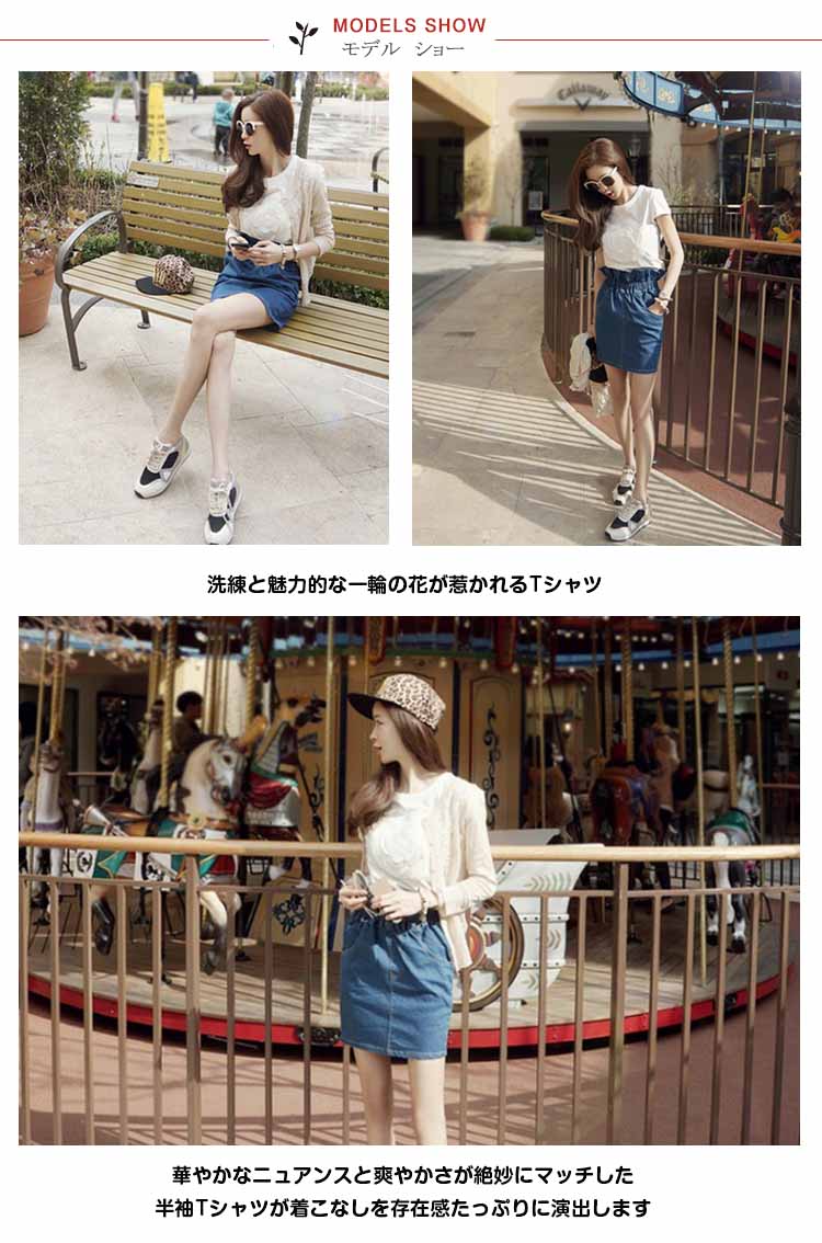 | 洗練と魅力的な一輪の花が惹かれるTシャツ華やかなニュアンスと爽やかさが絶妙にマッチした半袖Tシャツが着こなしを存在感たっぷりに演出します暑い夏はもちろん、ちょっと涼しい秋もカーディガンを羽織れてオシャレスタイル◎フリルスカートとのコーディネートが一気に華やぐ柔らかいデニムスカートが着心地最高!女の子テイスト満載のデザインが嬉しい | |