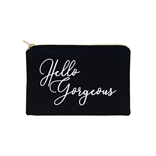 Hello Gorgeous 12 oz Cosmetic Makeup Cotton Canvas Bag - (Black Canvas)