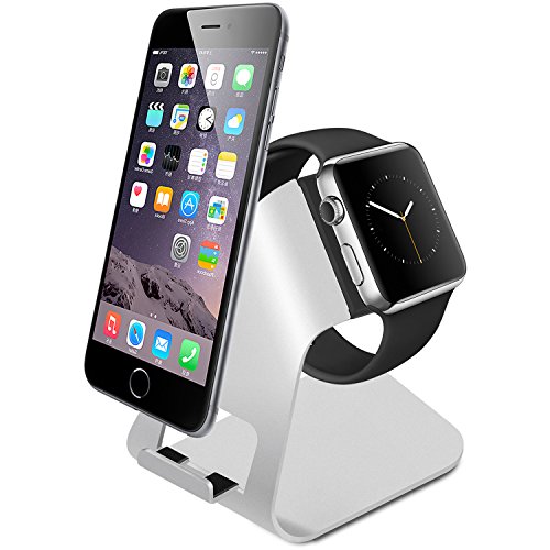 Description: the watch stand for the apple watch is compatible with all sizes and models of the new 2015 apple watch and iPhone, provide you much more convenience than ever. It supports the watch at a stable and comfortable condition. Perfect viewing angle: perfect angle for viewing. With the charged installed on this stand, you will never feel tired even after viewing for more than several hours. Fashionable and functional design: made of aluminum enhancing durability rectangular shape strengthen stability TPU dock avoids scratching the apple watch convenient cable cutout and insert provide enough slack to prevent the cable from overly bending weighed 2.04 Oz (58g) makes it portable and easily to carry silver and black color design makes it more elegant compatible with: all versions of the 2015 apple watch, 38mm and 42mm(original basic model / sport version / and edition models) and all versions of iPhone. Note: stand only, devices and cables not included. What is included: 1x stand for apple watch.Feature