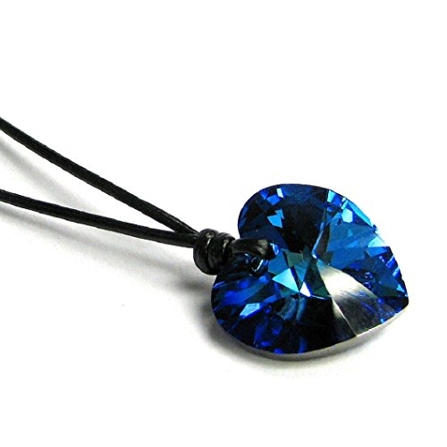 - Feature : Materials: Genuine leather cord, Swarovski Elements Crystal Heart 18mm / Color: Black Leather Bermuda blue / Necklace Length: total length is about ~26-28". With double adjusted knot, the length can be adjusted to your desired length between 14" and 24". / Quantity: 1 piece