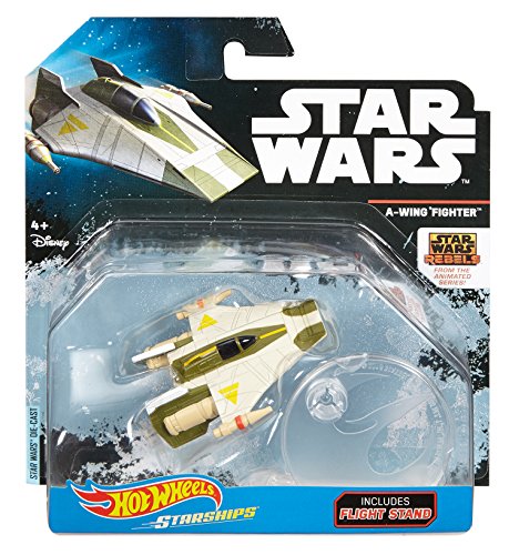 -. Binding : Toy -. Brand : Hot Wheels -. Color : off-white white green red black yellow -. Department : unisex-adult -. EAN : 0887961303575 -. Feature : Kids will love this iconic Star Warsstarship;Flight Navigator empowers kids to "fly" their starship;Flight Navigator doubles as a display stand so kids can show off a collection;Collectible scale and authentic design -. Genre : Action -. IsAdultProduct : 0 -. Label : Mattel -. Manufacturer : Mattel -. Model : DNP19 -. MPN : DNP19 -. PackageQuantity : 1 -. PartNumber : DNP19 -. ProductGroup : Toy -. ProductTypeName : TOYS_AND_GAMES -. Publisher : Mattel -. ReleaseDate : 2016-09-29 -. Studio : Mattel -. Title : Hot Wheels Star Wars Starship A-Wing Fighter (Rebels) -. UPC : 887961303575 -. Warranty : 1 year warranty against manufacturer defects