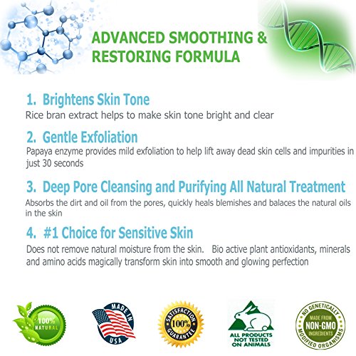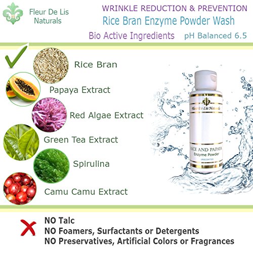 Rice and Papaya Enzyme Powder (water-activated) - All Natural Super Gentle Smoothing and Restoring Daily Cleanser - Pore purifying, anti-aging, collagen boosting ingredients- 4 Oz (Unscented )