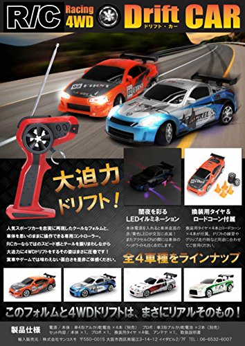 大人気のレーシング ドリフト復活です。 他の3品種のうちフェアレディZまたは、シルビアと 同時操作可能です。 (周波数が違います) 4WD走行
