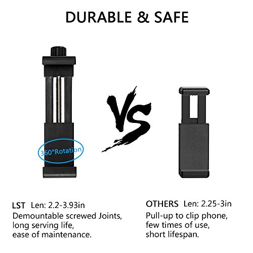 Width Adjustable & 1/4" Screw Thread: Width can be adjusted from 2.28 to 4.13 inch. Attachable to any regular sized tripod, monopod and smartphone with standard 1/4" screw thread at the bottom.