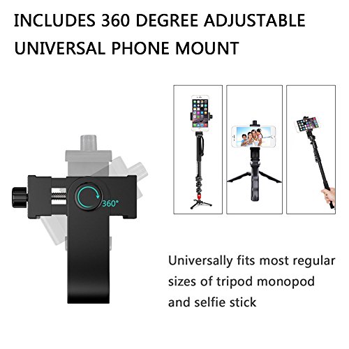 360 Degree Tripod Adapter: 360 degrees rotating phone holder for portrait mode (vertical) or landscape mode (horizontal).
