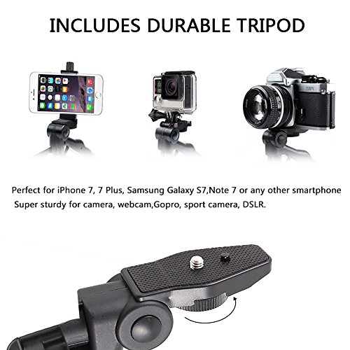 ONE FITS MOST: Phone Tripod fits most cellphone, such as iPhone 7, iPhone 7 plus, iPhone 6s, iPhone 6s plus, iPhone 6 plus, iPhone 6, iphone SE/5s/5/5c,Samsung Galaxy S7/S6,Galaxy S7/S6 edge, Note 5/4/3 and ,compliant to camera with 1/4-20 screw and sport camera like gopro.