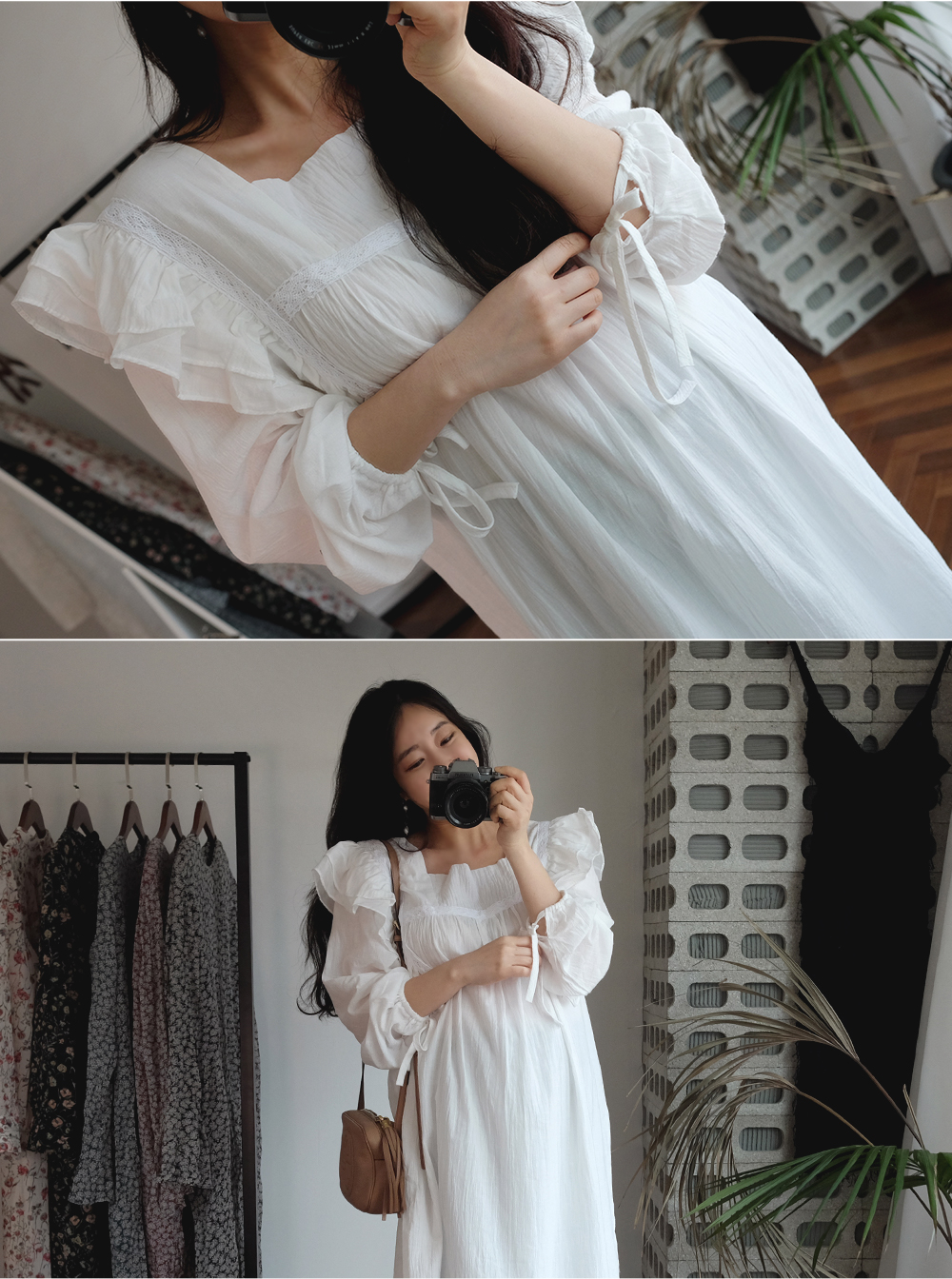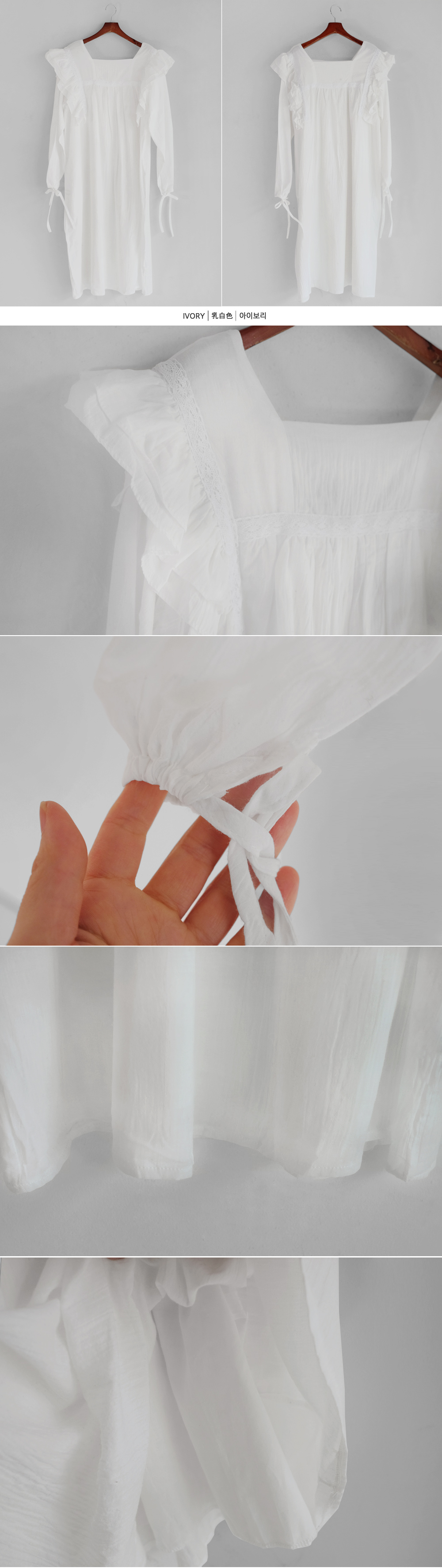 스퀘어 네크라인과 숄더의 프릴디테일로 여리함과 러블리 무드를 동시에!