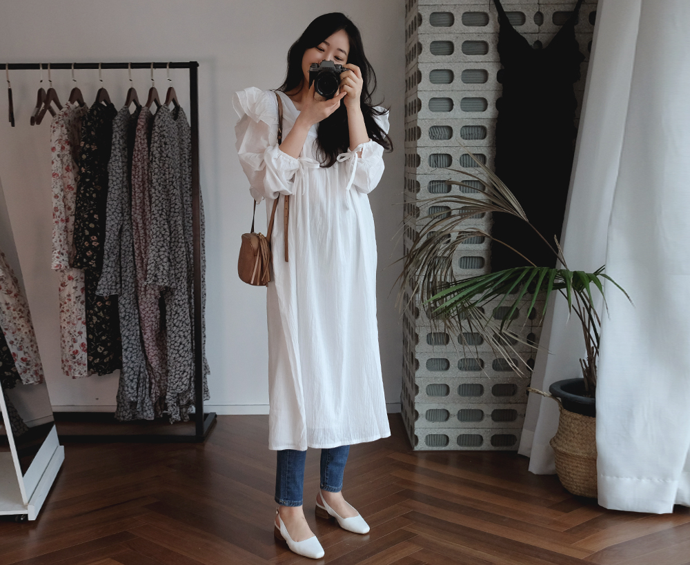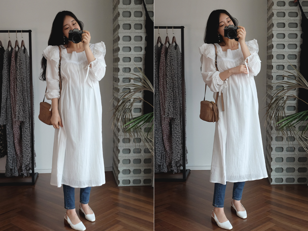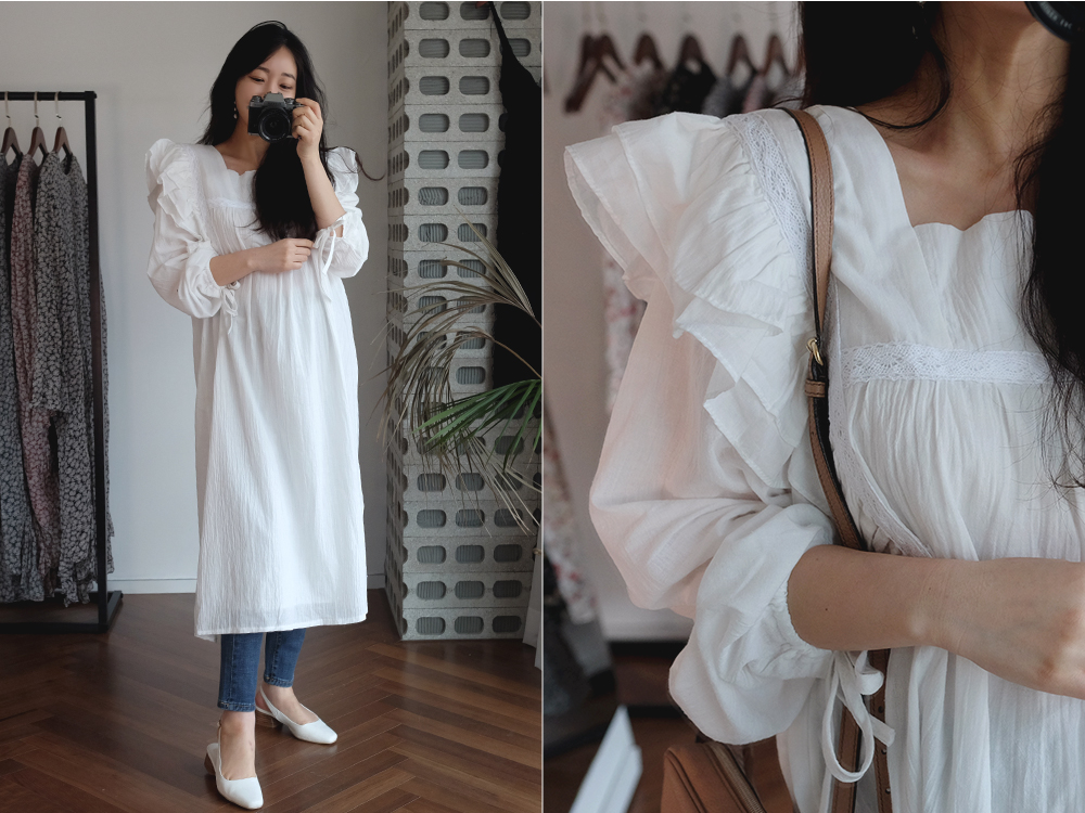 시즌에 구애받지않고 언제나 청순하게 입을 수 있는 프릴 원피스에요:D