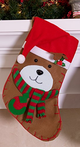 GREAT HOLIDAY DESIGN: This Christmas stocking features a great design of a brown bear wearing a red and white Christmas hat and a red and green scarf. No matter what your decoration style, this stocking is sure to fit in perfectly!