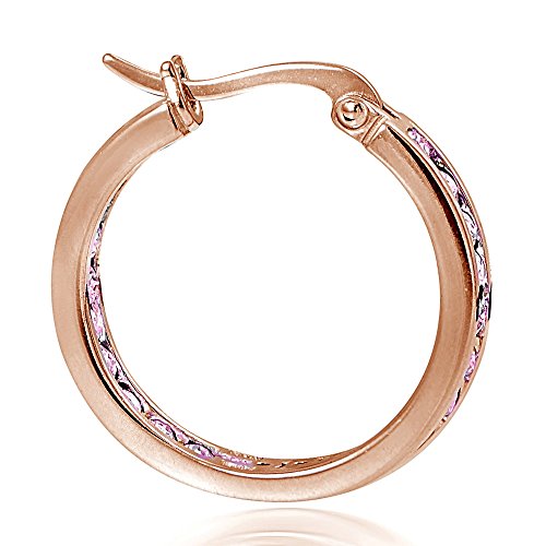 -. Binding : Jewelry -. Brand : Hoops & Loops -. Department : womens -. Feature : Sparkling Round Light Pink Cubic Zirconia Stones / Channel Set, Round Hoops / All Gem Weights are CZ weights. / FREE SPECIAL SATIN POUCH WITH EACH PURCHASE: We send all of our high quality jewelry with a free stunning branded soft, satin gift pouch. You can send our earrings easily as a gift to your friends, family or yourself! Our pouches symbolize the great extent we go to when it comes to satisfying our customers! / SPECIAL ANTI-TARNISH COATING: All of our hoop earrings are coated in a special anti-tarnish polish that will preserve its luster and shine. This coating also makes our jewelry very durable so that it can last for many years to come. -. Label : Hoops & Loops -. Manufacturer : Hoops & Loops -. ProductGroup : Jewelry -. ProductTypeName : FASHIONEARRING -. Publisher : Hoops & Loops -. Studio : Hoops & Loops -. Title : Sterling Silver Pink Cubic Zirconia Inside Out Channel-Set Round Hoop Earrings