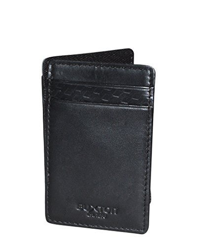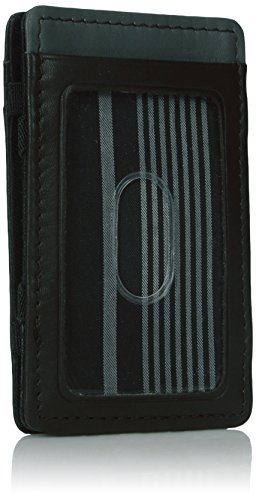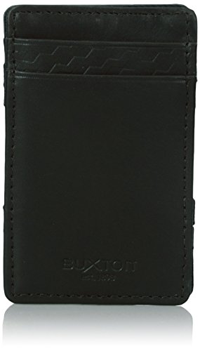 Studio : Buxton Men's Furnishings Publisher : Buxton Men's Furnishings Binding : Apparel Product Description Genuine satin cowhide leather with embossed pattern, striped fabric lining, satin nickel and rfid blocking material bellamy collection rfid magic wallet features 2 rfid lined credit card pockets, an i.d. Window, contrast stitch detail, strong durable elastic straps and a magic bill/card holder. 0