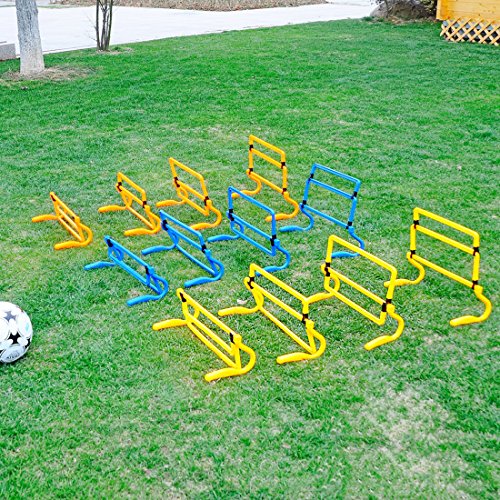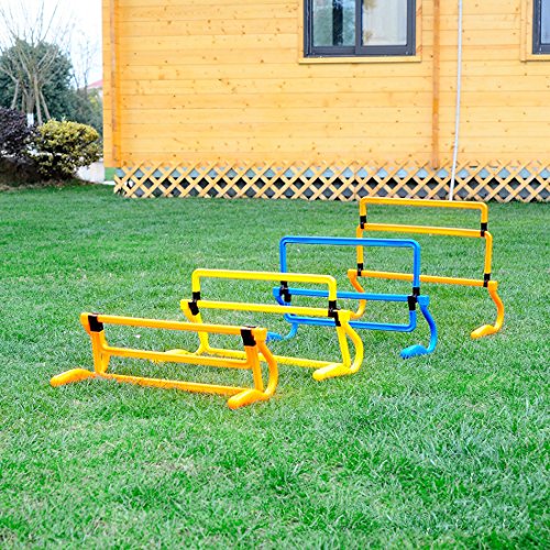 -. Feature : .Superior, three-piece twist anti-shatter design / .Lightweight, durable and not easy deformed, high-temperature resistant / .Removable and assemble the hurdles as you like / .These speed hurdles are essential practice equipment no matter what sport you and your squad plays. Awesome for soccer, football, baseball, field hockey, track and field or more! / .Great for footwork training and improve foot-speed and tone leg muscles