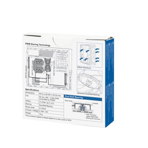 ARCTIC F8 PWM PST CO - 80mm Dual Ball Bearing Low Noise PWM Standard Case Fan with PST Feature - Ideal for Systems running 24/7
