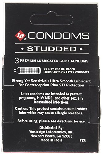 Studio : Cutting Edge International, LLC Publisher : Cutting Edge International, LLC Binding : Health and Beauty Product Description Real men wear studs. Introducing id studded lubricated condoms are strong yet sensitive designed to enhance your intimate experience while keeping you safe. This exciting vibrant foil with a natural clear latex condom is made with the same focus on quality you have come to expect from the makers of id personal lubricants. 3 pack latex condoms. 0
