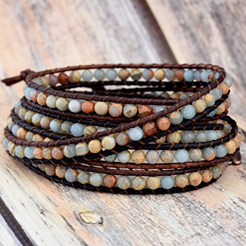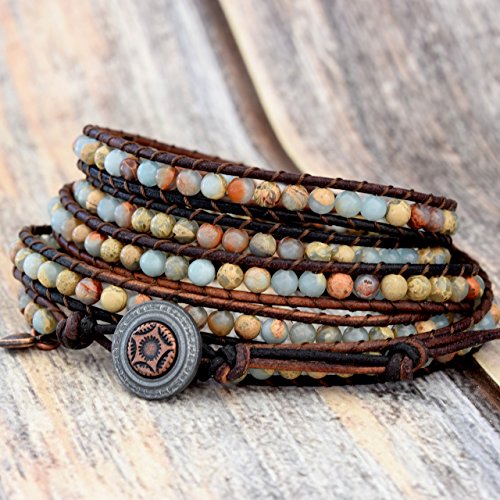 -. Title : 1 Of A Kind Aqua Terra Jasper Wrap Bracelet