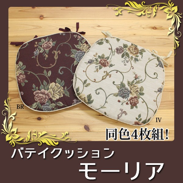 【商品名】クッション バテイ 花柄 エレガンス 『モーリア』 ブラウン 約45×43cm 4枚組
