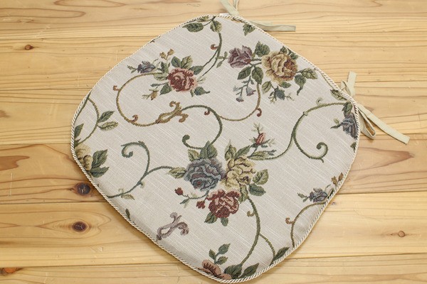 エレガンス柄のクッションです。人気の柄で洋室にもぴったりの商品です。表地にはジャガード織の生地を使用しているため上品な風合いのある商品です。