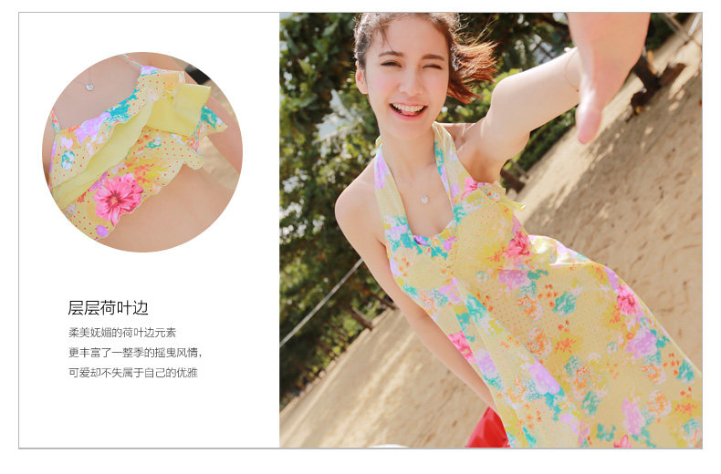 ?女比基尼三件套游泳衣钢托小胸聚拢修身显瘦沙滩泳装
