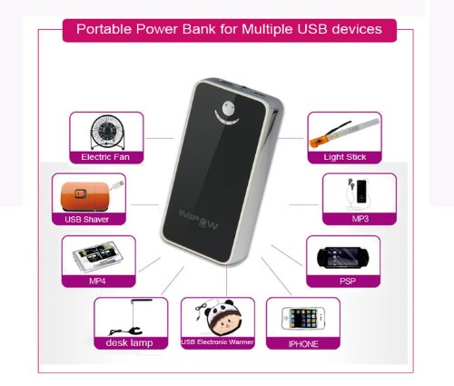 Imipow IM605 (Silver Color) 10000mAh External Battery Pack Power Bank Charger with built-in Flashlight and 2 Connectors / for Apple: iPhone 5 4S 4,iPod,New ipad,iPad mini,iPad 2; / Most Android Phones and Tablets: Samsung Galaxy S3, Galaxy Note 2, al