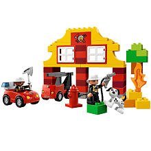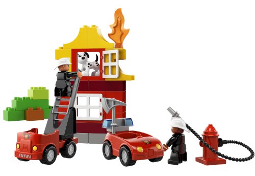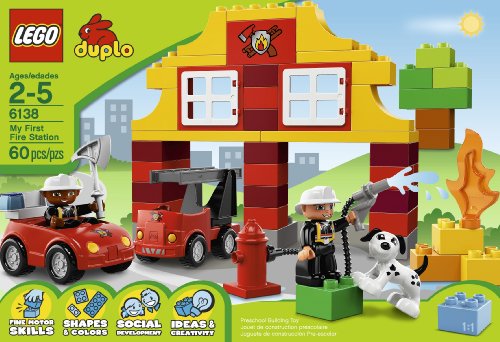 Down at the LEGO DUPLO Fire Station, the brave firefighters are getting ready to save the day! The mini fire truck is ready to roll when the fire bell rings! Use the ladder, fire axe and fire hose to help put out the blaze! DUPLO bricks, figures and elements are colorful, safe and sturdy for little hands and big imaginations.Feature