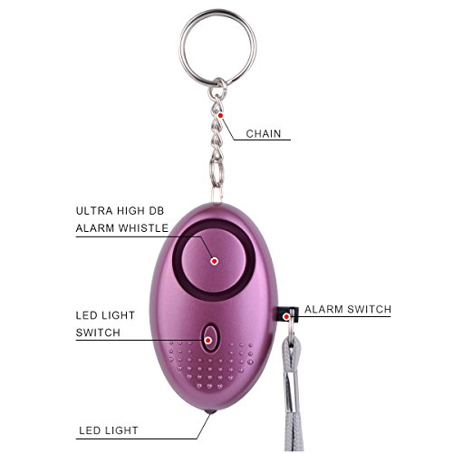 - EXTREMELY LOUD SOUND:120dB-130dB Super loud emergency personal alarm disguised as a bag decoration.The sounds could last 40-60 minutes continuous piercing alarm. 3 pcs* LR44 batteries are included