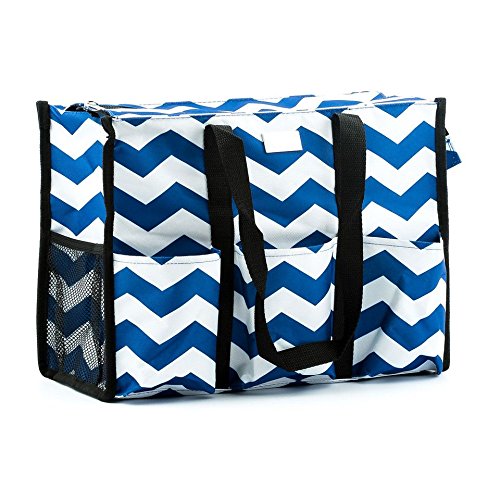 Pursetti Teacher Tote (Navy Chevron) with Pockets - Perfect Gift for Teacher's Appreciation and Birthday