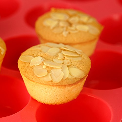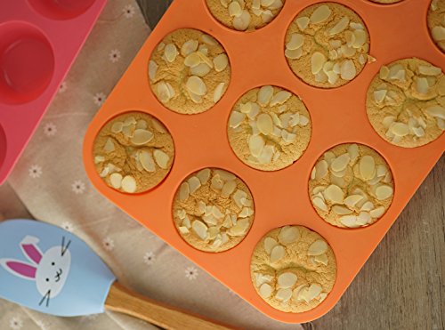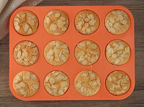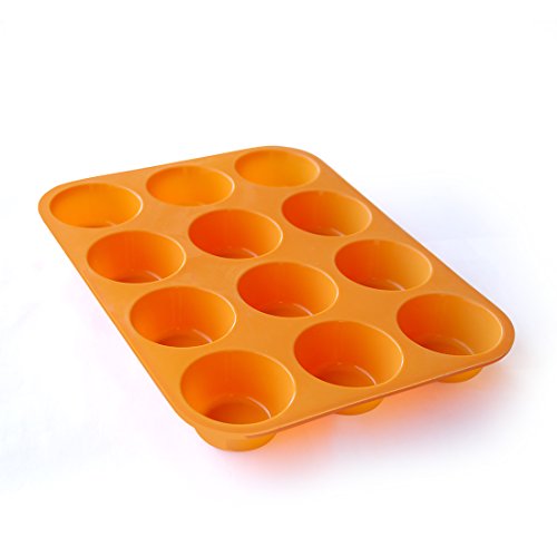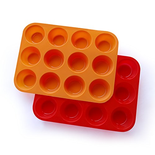 Mirenlife Non-Stick Silicone Muffin Cupcake Baking Pan - Standard Size - 12 Cups - 2 Pack(Red and Orange)