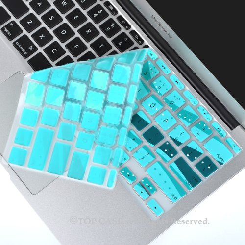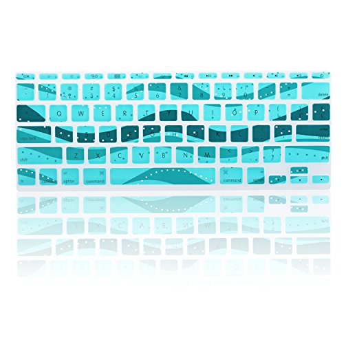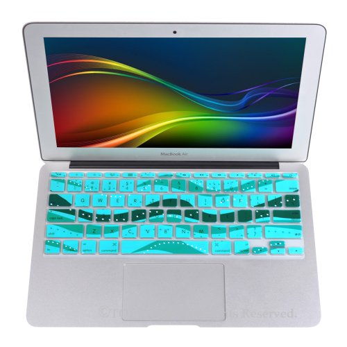 TopCase Wave Series Silicone Keyboard Cover Skin for New Macbook Air 11" Model: A1465 + TopCase Mouse Pad (New macbook air 11" A1465, Aqua Blue)