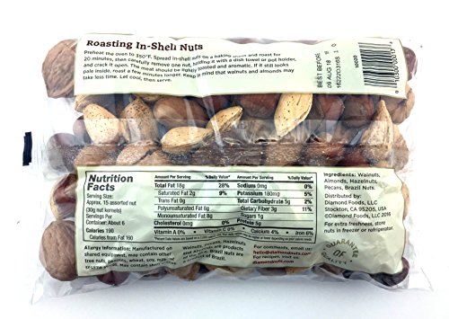 - Diamond Mixed Nuts Inshell, Walnuts Pecans Hazelnuts Almonds Brazil Nuts, Non-GMO, 16-Ounce Bags
