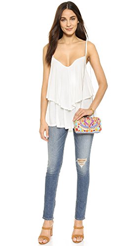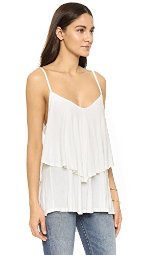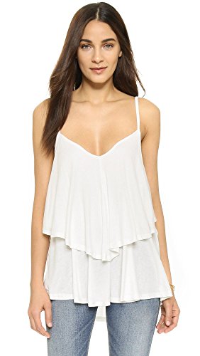 A ribbed jersey Rachel Palley top with a draped fit and layered ruffles. Low-cut neckline. Slim shoulder straps.