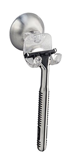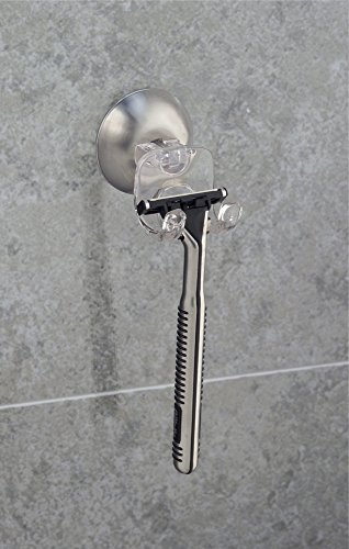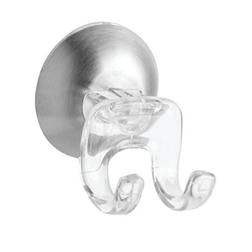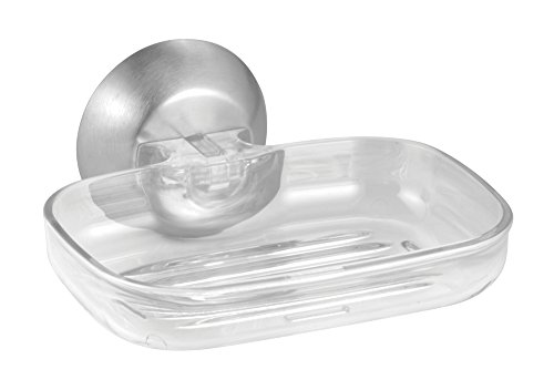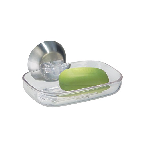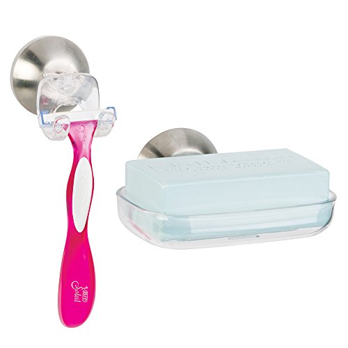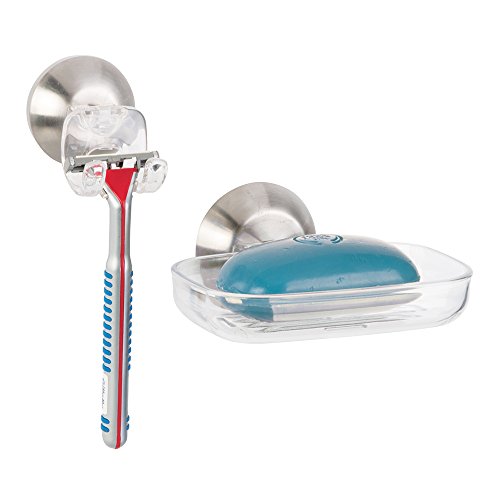 mDesign Power Lock Suction Razor Holder and Bar Soap Dish - Pack of 2, Clear/Brushed Stainless Steel