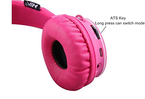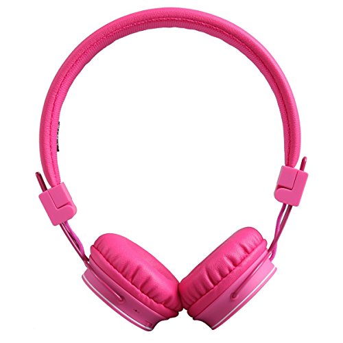Bluetooth Volume Limiting Kids Headphones,Sodee Wireless/Wired Stereo Over-ear HD Headset with Share port SD Card FM Radio In-line Volume Control Microphone for Children Adults ( Pink )