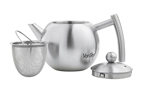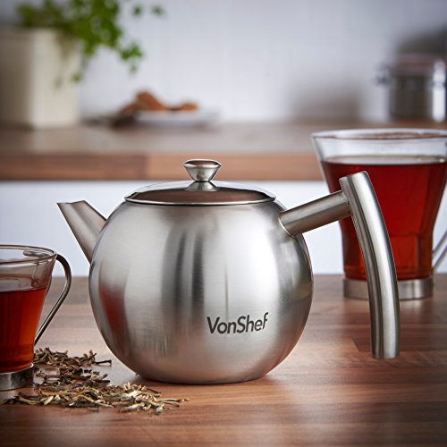 The VonShef tea pot is designed so the infuser rests perfectly in the centre of the pot; this allows the water to permeate the loose tea from every angle, making a more rounded and flavoursome tea. The teapot can also be used without the infuser for use with your favourite tea bags.
