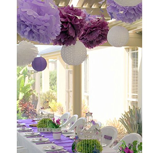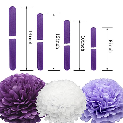 Coceca 21Pcs Tissue Paper Pom Poms Purple Paper Pom Poms 14 Inch, 12 Inch, 10 Inch, 8 Inch Purple Set Flower Ball for Birthday Wedding Party Outdoor Baby Shower Decoration