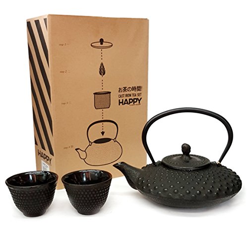 -. Feature : Rinse out with warm water and hand dry / This Cast Iron Tea Set Includes: One Teapot (18oz), Two Teacups / Warranty not included / Happy Sales HSCT-MCB15, Cast Iron Tea Pot Tea Set Shogun, Black