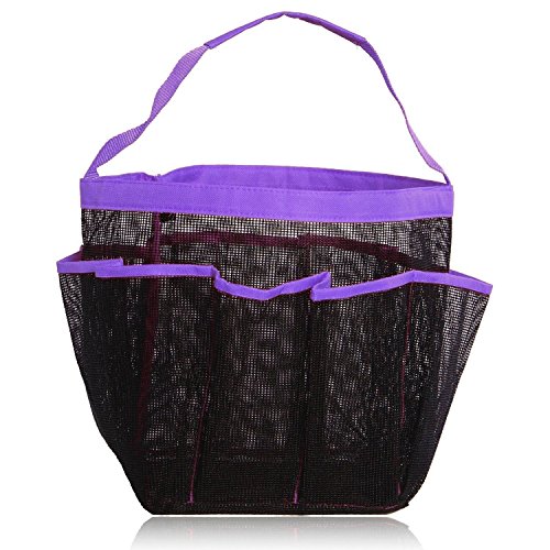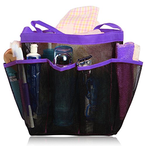 Quick Dry Hanging Toiletry and Bath Organizer with 8 Storage Compartments, Shower Tote, Mesh Shower Caddy, Perfect Dorm, Gym, Camp & Travel Tote Bag, Purple