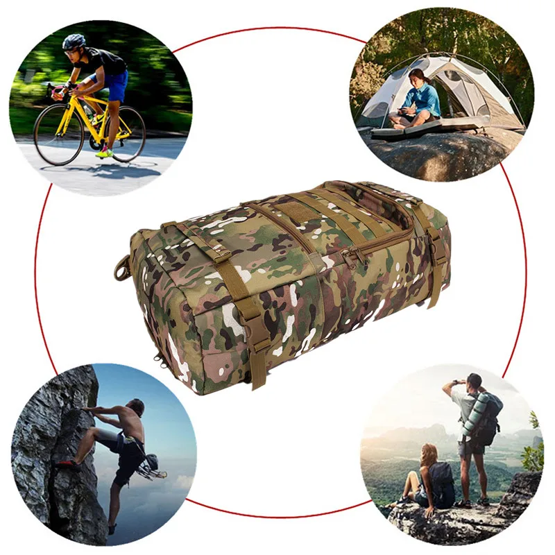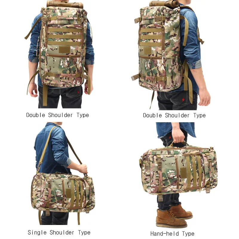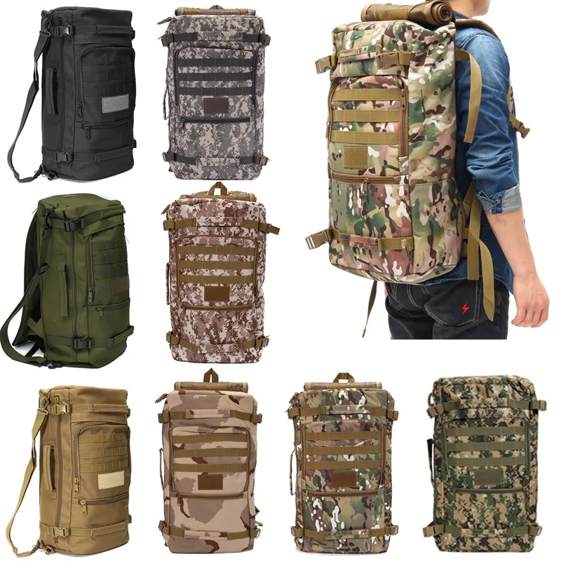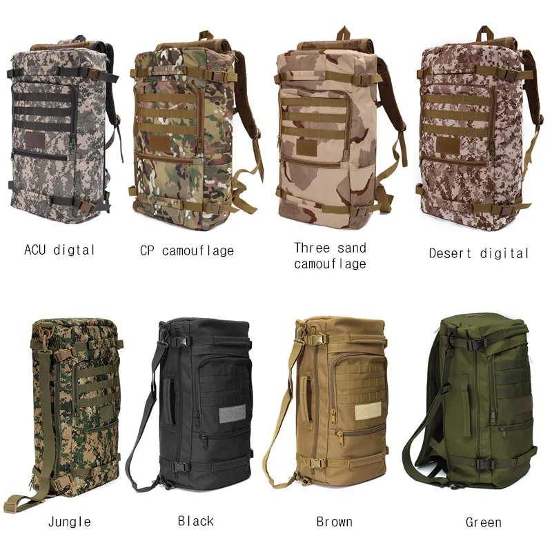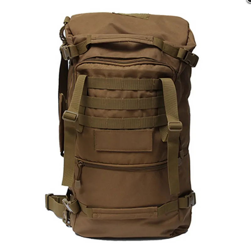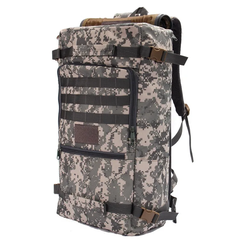 Features: --Bag Name: 50L Casual Tactical Backpack,Travel bags --Bag Demension: high 52.5cm* wide 29.5cm* thick 18cm --Built-in Zip, convenient to storage some things. --Bag Weight: approx. 1130g --Bag Function: Army Tactical Backpack --Bag Suited: Outdoor Travel, Hiking,Fitness,Mountaineering, Cycling