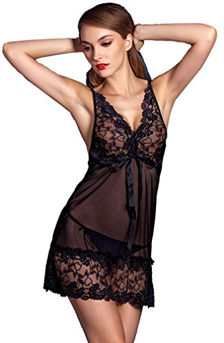 Clor Womens Flirting Lace Mesh Pajama Lingeries - Black#2 M