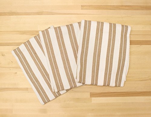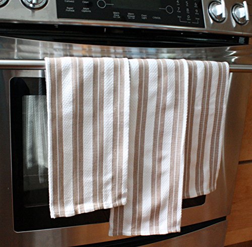 Established in 1892, the John Ritzenthaler company (Ritz) has long been synonymous with the finest quality in home textiles. Today, the John Ritzenthaler company is a privately owned manufacturer, wholesaler and distributor of a complete line of high quality, color coordinated, fashion basic and designer bath and kitchen textiles, as well as, specialty laundry and cleaning aids. Each Ritz set of 3 cotton kitchen towels featuring stripes in a basketweave design is made from 100-percent cotton. They are highly absorbent and long-wearing and great for everyday use. Machine wash and tumble dry low.