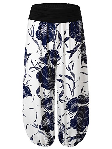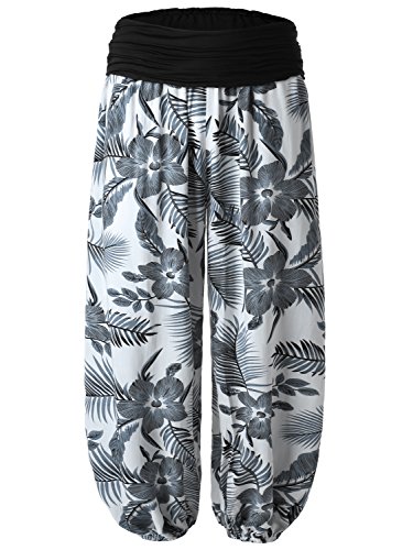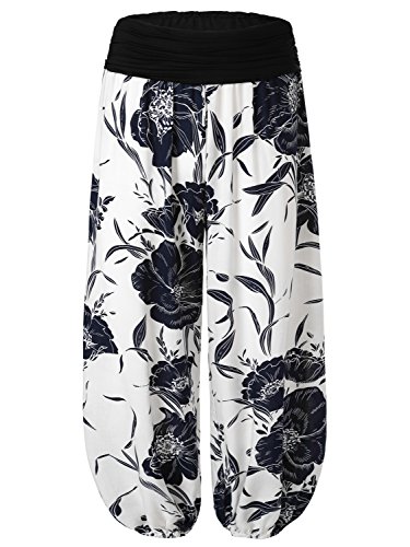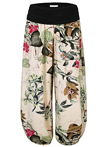 | BAISHENGGT Women's Floral Print Elastic Waist Harem Pants |