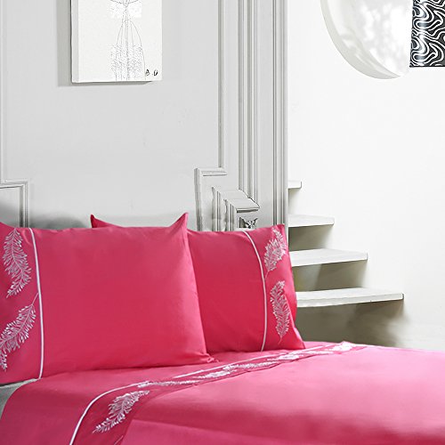 - Give a sophisticated touch and produce a royal, stylish & crisp look in your bedroom with this embroidery machine washable Sheet Set.Rejuvenate your bedroom decor with this matching set. Pairs easily with Merryfeel Flat Sheets, Fitted Sheets, Duvet Set, Pillowcases and Bed Skirt. Magnificent selection of colors for your bedroom will take you in land of dreams.You deserve it.