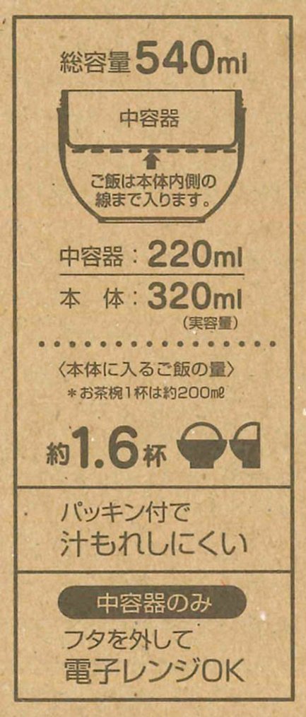 In a general luncher, the heat retention container and the side dish container are separated, but a compact type where containers can be stacked in a rice container