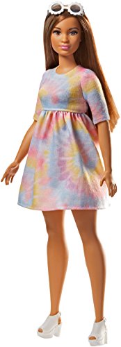 -. Feature : Barbie Fashionistas doll is "to tie dye for" in this pastel tie-dye dress with a sporty boho feel / White platform shoes and matching circle sunglasses complete the look / Her dark hair is right on trend hanging straight and loose / More variety makes collecting Barbie Fashionistas dolls even more fun / Collect them all (each sold separately, subject to availability)