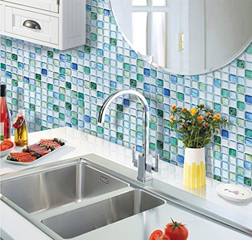 Beaustile Sapphire Blue Mosaic 3D Wall Stickers Home Decor Fire Retardant Backsplash Wallpaper Bathroom Kitchen DIY