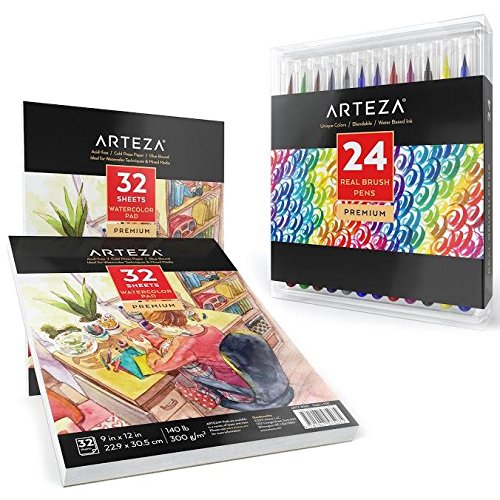 Arteza Real Brush Pen & Watercolor Pad Gift Bundle (Set of 3)