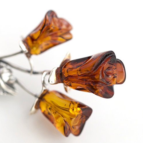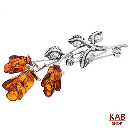 -. Title : COGNAC BALTIC AMBER STERLING SILVER 925 BEAUTY ROSE PIN BROOCH. KAB-9