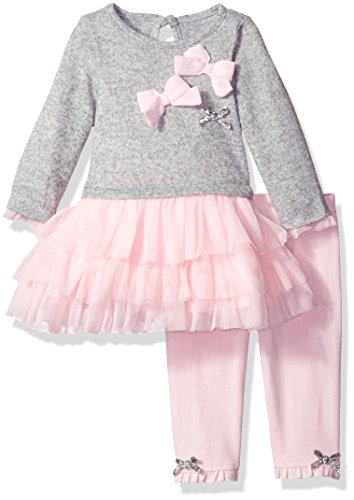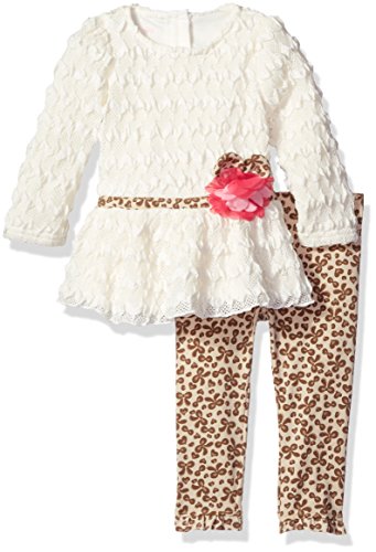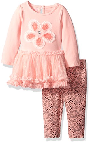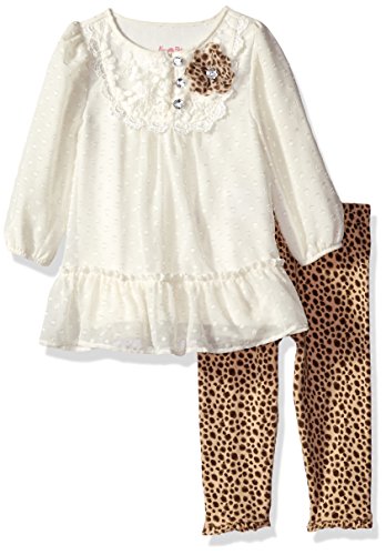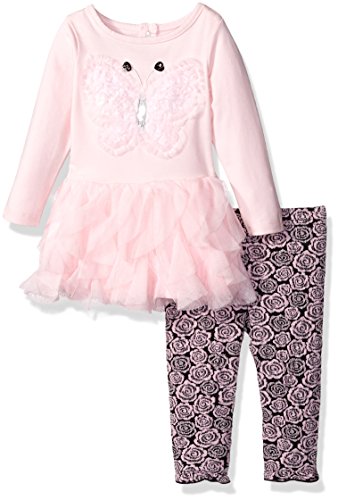 2 piece long sleeve tunic with butterfly applique and circular ruffles. Printed legging