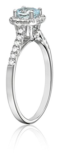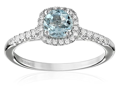 -. Binding : Jewelry -. Brand : Amazon Collection -. Color : Blue -. Department : womens -. EAN : 0032964059077 -. Feature : White gold ring featuring round aquamarine stone in cushion-shape halo of round diamonds / Diamond-accented shoulders and gallery / All our diamond suppliers confirm that they comply with the Kimberley Process to ensure that their diamonds are conflict free. / Imported -. Label : The Aaron Group - HK DI -. Manufacturer : The Aaron Group - HK DI -. Model : 77754A6Q1EG0 -. MPN : 77754A6Q1EG0 -. PartNumber : 77754A6Q1EG0 -. ProductGroup : Jewelry -. ProductTypeName : FINERING -. Publisher : The Aaron Group - HK DI -. Studio : The Aaron Group - HK DI -. Title : 14k White Gold Aquamarine and Diamond Cushion Halo Engagement Ring (1/5 cttw, H-I Color, I2-I3 Clarity), Size 7 -. UPC : 032964059077