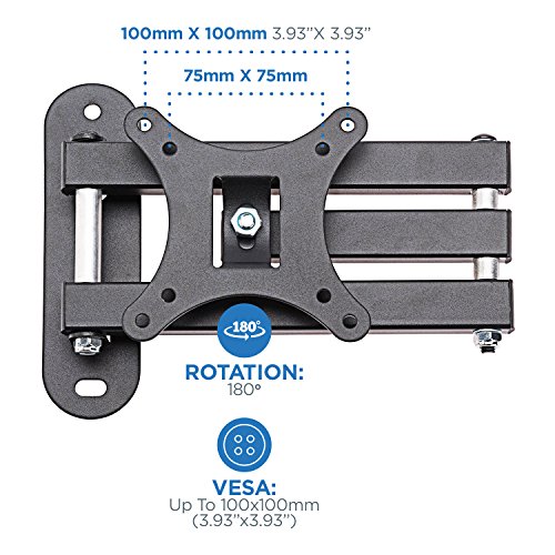 The Full Motion Tilt and Swivel TV Wall Mount That Makes Watching TV Unmatchable Basics Hardware's Full Motion Tilt and Swivel TV Wall Mount Bracket upgrades experience on watching TV or placing monitors, without effort. Not only it holds the TV steadily in place but makes your viewing experience much better providing always the best viewing angle. Its flexibility offers a full motion 360-degree rotation, a 180-degree swivel and up to 15-degree tilt. Say goodbye to glare bothering you while you watch your favorite shows. Designed to fit most 13 to 30 inch LED, LCD, OLED or Plasma flat screen TVs, or even monitors. All that while holding up to 15 kg/33 lbs. capacity. This wall mount also comes equipped with the mounting hardware it requires, along with a bubble level to help you find the exact position during installation process. Includes easy-to-follow instructions. Specs: The TV mount fits VESA - mounting hole pattern: 100x100mm and 75x75 Color: Black Product extends from 2 to 15-inches Package Measures: 9.7 x 1.8 x 7.4 inches 0 |